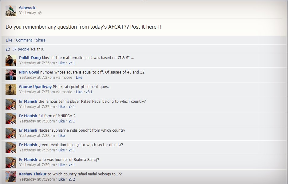 Even though we have some real AFCAT 02/2012 questions papers for you with answer key for some of the questions. All thanks to our facebook page fans who commented some questions on memory based, indeed our warriors have sharp memory ๐