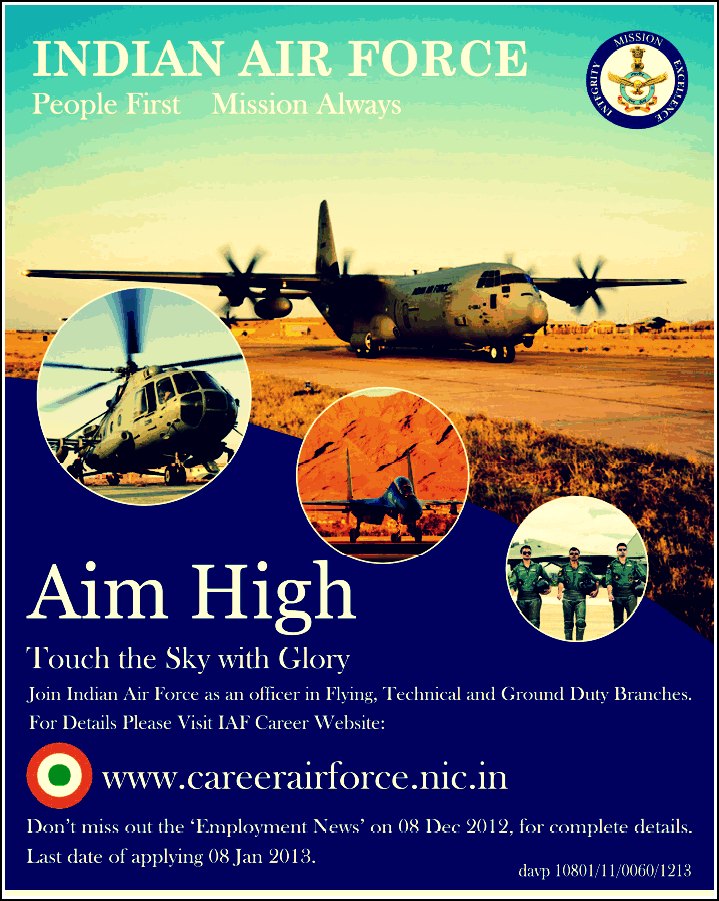 Indian air force is going to publish the AFCAT 1/2013 notification for theย recruitmentย of flying, technical and ground duty officers. Air force official website careerairforce.nic.in is soon going to publish the official notification of AFCAT 1/2013.