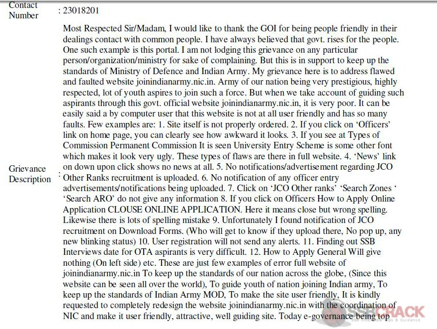 One of my friend and defence aspirant, Mr. Vinay had lodged a complaint on 28 December 2012, since then, there was hardly any effort or feedback he has got from the concerned authority. This action was taken at the time of TGC 117 entry after experiencing the errors on the website, only to make sure that it would be rectified for next entries.