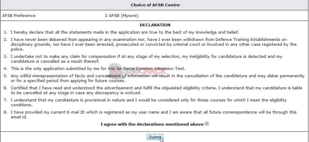 16. Submit your application form after reading and accepting the declaration. Make sure you have double checked all the details before clicking on submit button.