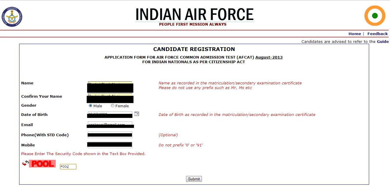 Here you can check out step by step guidance on how to fill online application form for AFCAT 02/2013. If you find any difficulty while applying for AFCAT 02/2013, you can contact AFCAT cell for further clarification. It is advised to read the notification and instructions given on the portal carefully before applying.