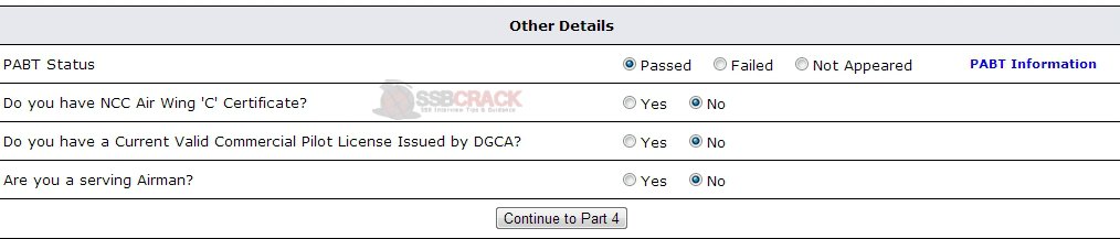 10. Rest of the details are normal and you can fill them with ease. Keep your educational documents handy while applying for AFCAT 02/2013. Click on continue to part 3 once finished filling part 2.