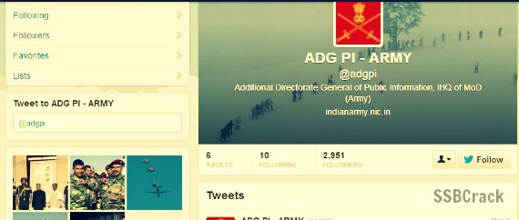 Now aspirants can follow Indian Army on social networking platform like Facebook and Twitter. Armyโs Additional Directorate General of Public Information (ADGPI) joined Twitter and Facebook lately. These accounts are official accounts of Indian Army and not a fan page or profile created by others.