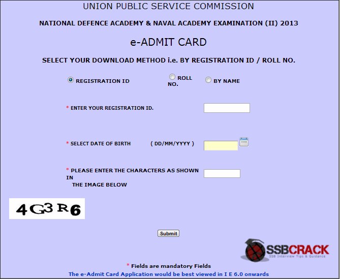Home » NDA and NA Examination (II) 2013 eAdmit Card