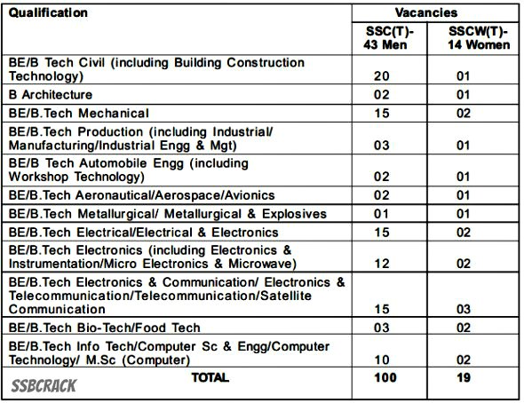 Eligible Branches of SSC 43rd and SSCW 14th Tech Entry with Vacanciesย