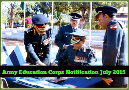 Army Education Corps Notification July 2015. Indian Army has invited the applications for Army Education Corps, from eligible Male candidates. The candidates, if selected will be granted a permanent commission in the Indian Army. The training is due to commence in July, in Indian Military Academy, Dehradun.