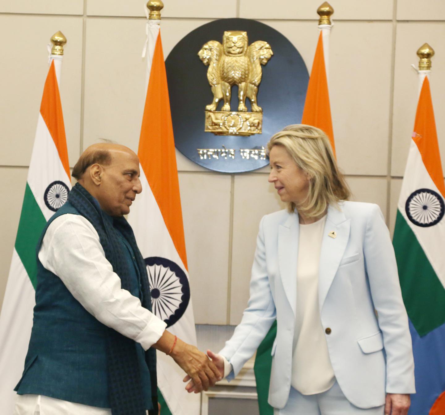 Defence Minister Shri Rajnath Singh of India engaged in a bilateral meeting with Ms. Kajsa Ollongren, the Defence Minister of the Netherlands, on February 23, 2024, in New Delhi.