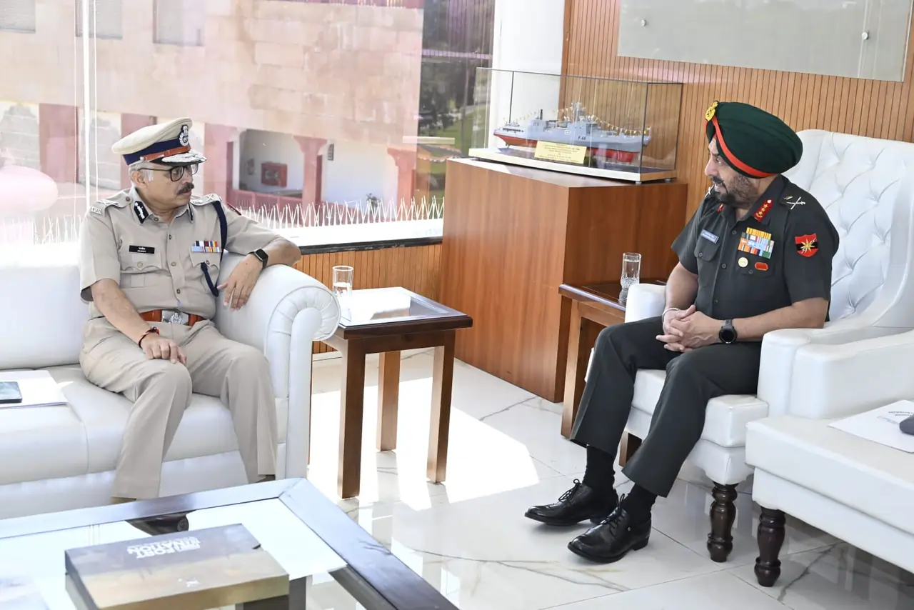 In a step towards strengthening security through synergy, Lieutenant General Manjinder Singh, Army Commander, Sapta Shakti Command, held discussions with Shree Rajeev Kumar Sharma, Director General of Police, Rajasthan.