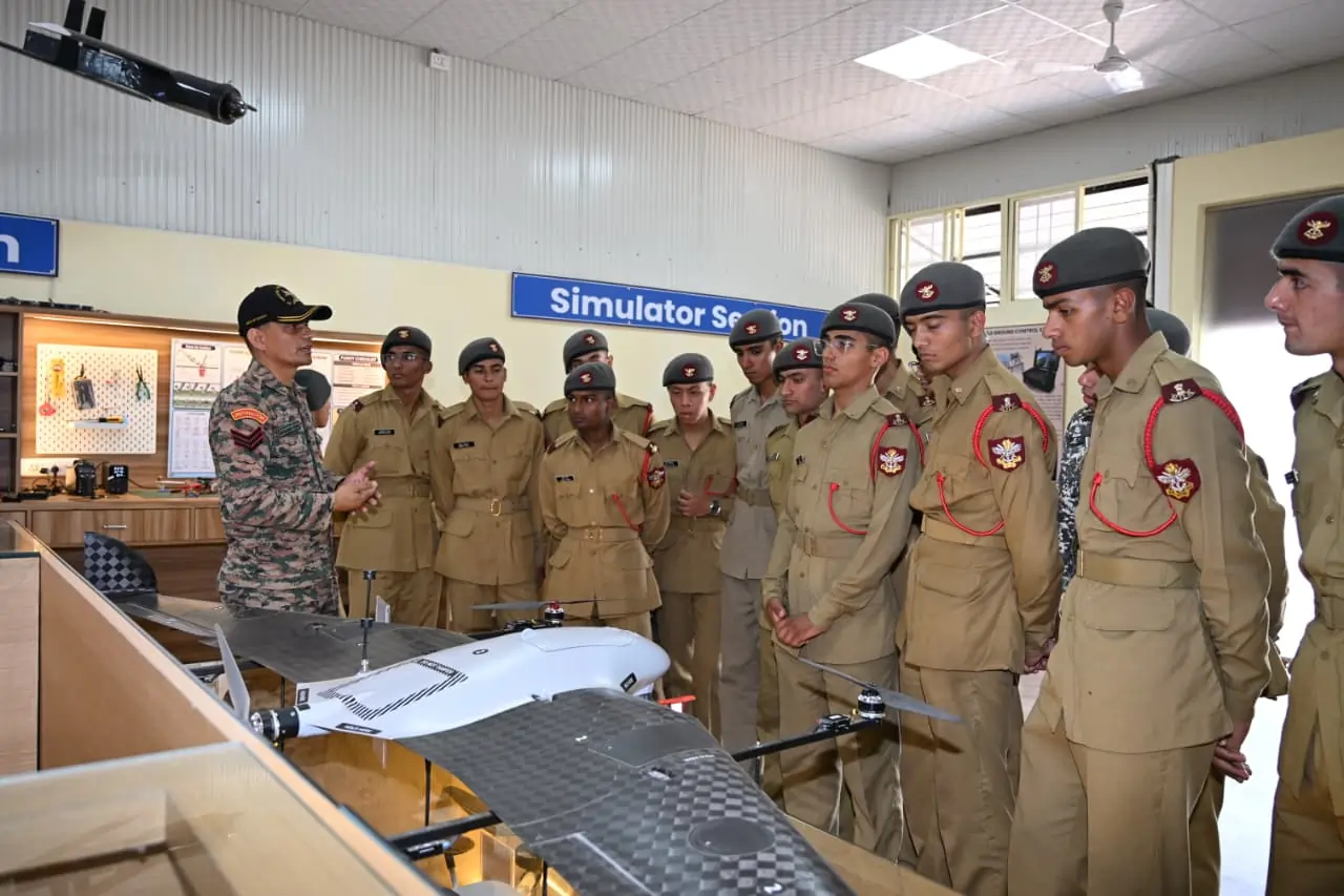 During the visit, cadets received hands-on exposure to drone technology and were briefed on advanced tactical and technical training courses, highlighting the evolving nature of mechanised warfare.